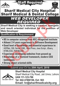 Sharif Medical & Dental College Jobs 2018 Web Developer