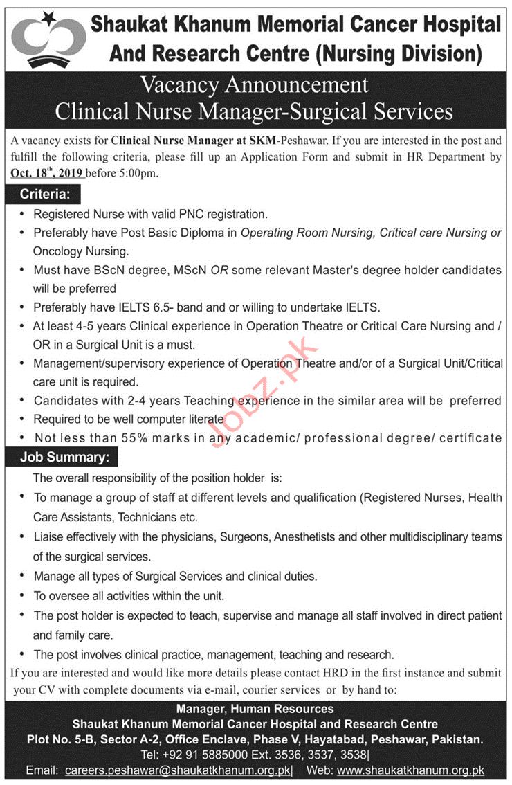 Vacancies in Shaukat Khanum Memorial Cancer Hospital & Research Centre Advertisement October 2019
