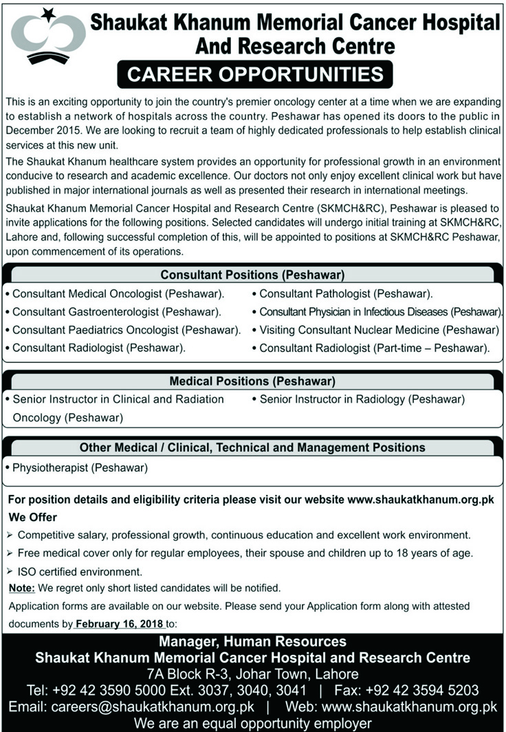 Latest Shaukat Khanum Memorial Cancer Hospital & Research Centre Medical Posts Peshawar 2025
