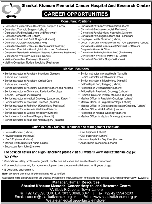 Latest Shaukat Khanum Memorial Cancer Hospital & Research Centre Medical Posts Lahore 2025