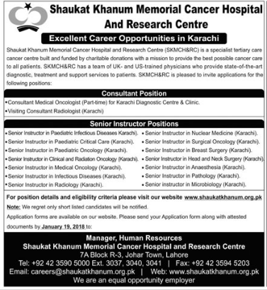 Shaukat Khanum Memorial Cancer Hospital Required Instructors
