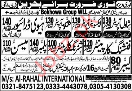 Latest Al Rahal International Manpower Services Construction Posts Bahrain 2025