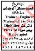 Latest Auto Parts Manufacturing Organization Engineering Posts Lahore 2025