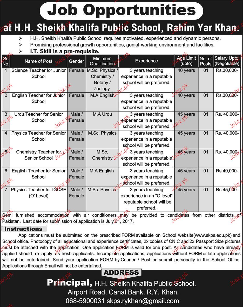 Apply as per details in job advertisement. Login to view further details of how to apply via https://www.jobz.pk online.
