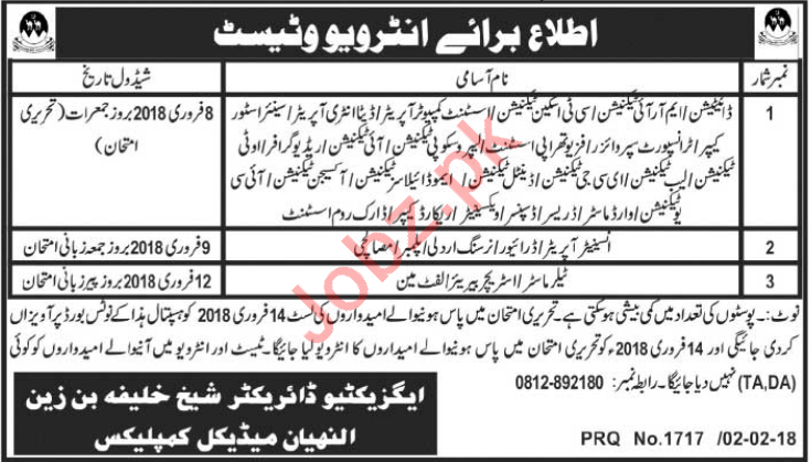 Latest Sheikh Khalifa Bin Zayed Al Nahyan Hospital Medical Posts Quetta 2025