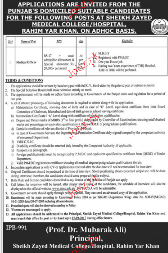 Latest Sheikh Zayed Medical College Medical Posts Rahim Yar Khan 2025