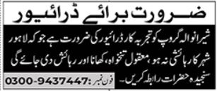 Vacant posts including driver are announced in Sheranwala Group Lahore, lahore Punjab Pakistan as per 11 December 2022 advertisement in daily Jang Newspaper. Persons with Matric and Middle etc. education can apply.