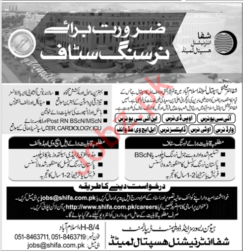 Shifa International Hospital Islamabad Jobs 2020 For Nurses