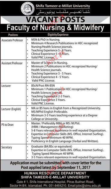 Shifa Tameer-e-Millat University Jobs