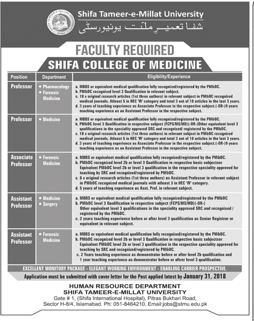 Latest Shifa Tameer e Millat University STMU Teaching Posts Islamabad 2025