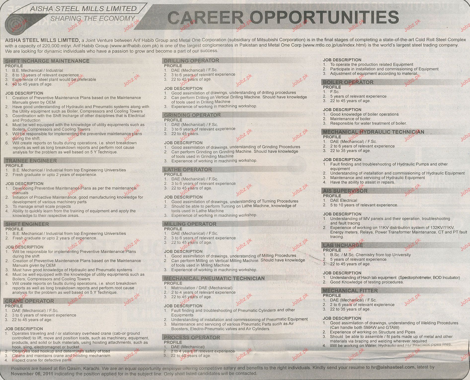 Latest Private Company Industrial Posts Karachi 2025