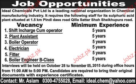 Shift Incharge, Plant Assistants, Electricians Wanted