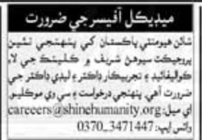 Latest SHINE Humanity Medical Posts Karachi 2025