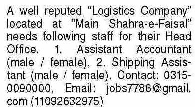 Apply at Freight Forwarding & Logistics Company latest Classifieds jobs in Accounting and departments before closing date which is around February 28, 2022 or as per closing date in newspaper ad. Read complete ad online to know how to apply on latest Freight Forwarding & Logistics Company job opportunities.