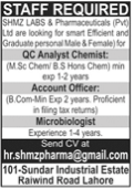 Vacancies in SHMZ Labs & Pharmaceuticals Pvt Ltd Advertisement May 2021