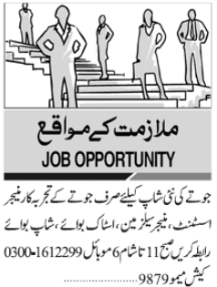 Shoes Shop Jobs 2021 For Management Staff In Karachi