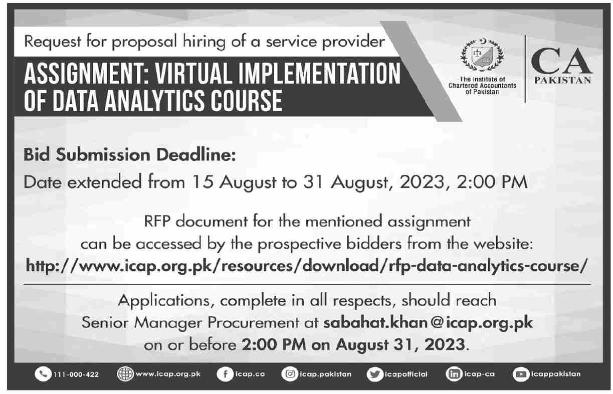 Admissions in The Institute of Chartered Accountants of Pakistan 2023 for Virtual Implementation of Data Analytics Course has been announced. Eligible students who qualify as per admission criteria in The Institute of Chartered Accountants of Pakistan Karachi Sindh Pakistan can apply in Management Course for academic year 2023. Students who want to enroll for academic session 2023 in Course qualification and admission criteria for Government institute can apply till last date 31 August 2023. Read newspaper ad for exact details.