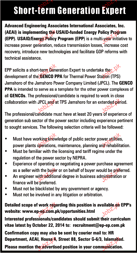 Apply as per details in job advertisement. Login to view further details of how to apply via https://www.jobz.pk online.