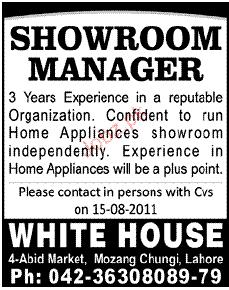 Showeroom Manager Job Opportunity
