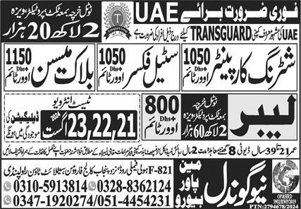 New Gondal Manpower Bureau invites applications for job positions advertised in daily Express dated 20 August 2024 for following vacancies in Abu Dhabi, abu dhabi UAE.
