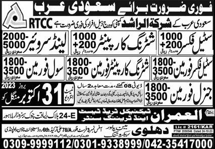Dahlawi Manpower Recruiting latest Overseas Management jobs and others can be applied till October 31, 2023 or as per closing date in newspaper ad. Read complete ad online to know how to apply on latest Dahlawi Manpower Recruiting job opportunities. Facilities like transport, medical and accommodation may be provided.