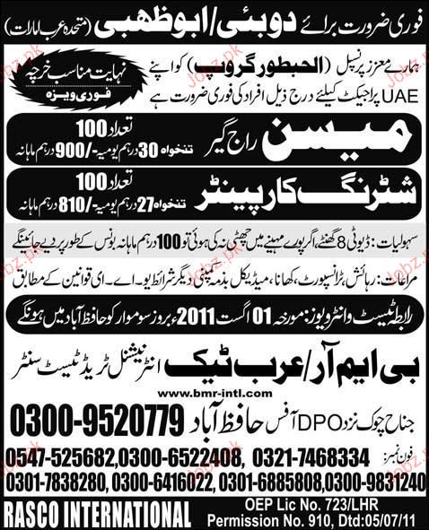 Apply as per details in job advertisement. Login to view further details of how to apply via https://www.jobz.pk online.