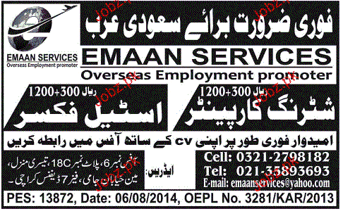 Shuttering Carpenter and Steel Fixers Job Opportunity