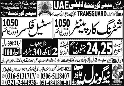 New Gondal Manpower Bureau jobs advertisement dated about 23 January 2024 in daily Express Newspaper invites application for the vacant post of shuttering carpenter and steel fixer in Abu Dhabi, dubai UAE. Preferred Education is Middle and Matric etc.
