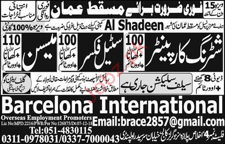 Latest Barcelona International Overseas Employment Promoters Construction Posts Muscat 2025
