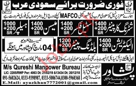 Vacancies in Qureshi Manpower Bureau Advertisement March 2019