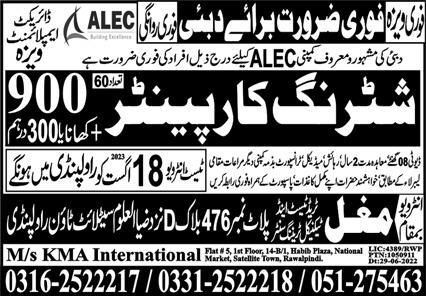 Mughal Trade Test & Technical Training Center Dubai, abu dhabi Dubai invites applications from eligible candidates for the post of shuttering carpenter as per advertisement of August 17, 2023 published in daily Express Newspaper. Preferred Education is Intermediate and Matric etc.