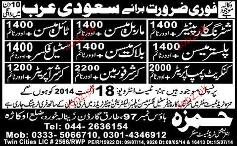 Shuttering Carpenter, Marble Mson, Tile Maso Job Opportunity