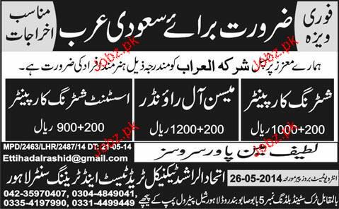 Shuttering Carpenter, Mason Allrounders Job Opportunity