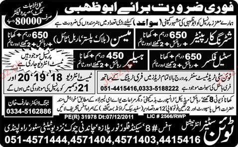 Shuttering Carpenter, Mason, Steel Fixer Job Opportunity