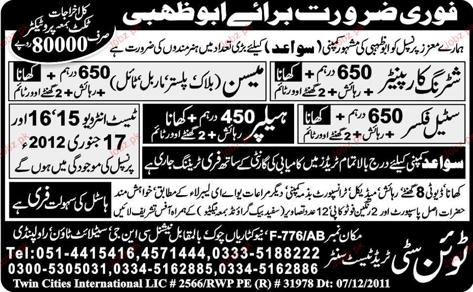 Apply as per details in job advertisement. Login to view further details of how to apply via https://www.jobz.pk online.