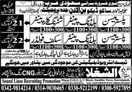 Al Shoughla Overseas Employment Promoters invites applications for job positions advertised in daily Express dated 19 February 2025 for following vacancies in Jeddah, dammam Saudi Arabia.