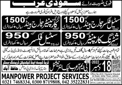 BMR Arab Tech International invites applications for job positions advertised in daily Express dated 16 December 2022 for following vacancies in Madina, makkah Saudi Arabia.