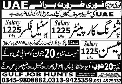 Naveed Trade Test & Technical Training Center is looking for candidates for following posts as per job advertisement published in daily Express Newspaper of June 16, 2023 for location Abu Dhabi, sharjah UAE: