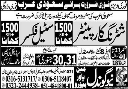 Apply at New Gondal Manpower Bureau latest Overseas jobs in Manufacturing and departments before closing date which is around January 31, 2024 or as per closing date in newspaper ad. Read complete ad online to know how to apply on latest New Gondal Manpower Bureau job opportunities. Learn today skills like Manufacturing and Carpentry to apply confidently on these New Gondal Manpower Bureau jobs. Salary varies from 114000. Overtime is allowed. On job accommodation, medical, food and transport facility is provided.
