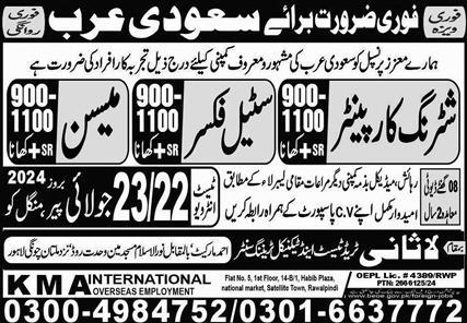 Lasani Trade Test & Technical Training Center invites applications for job positions advertised in daily Express dated 9 July 2024 for following vacancies in Makkah, jeddah Saudi Arabia.