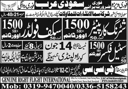 GCC Techni Test & Training Center Riyadh, dammam Saudi Arabia invites applications from eligible candidates for the post of scaffolder, shuttering carpenter and steel fixer as per advertisement of June 13, 2025 published in daily Express Newspaper. Matric and Intermediate etc. educational qualification will be preferred.