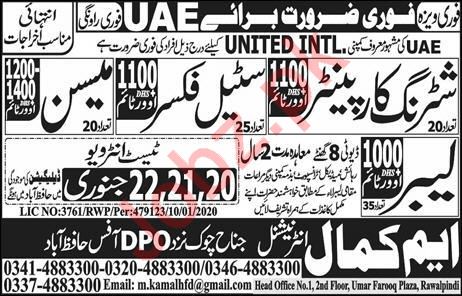 Vacancies in M Kamal Recruitment Services Advertisement January 2020
