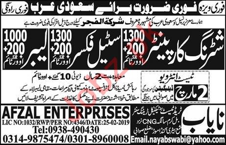 Shuttering Carpenter, Steel Fixer & Labor Jobs 2019