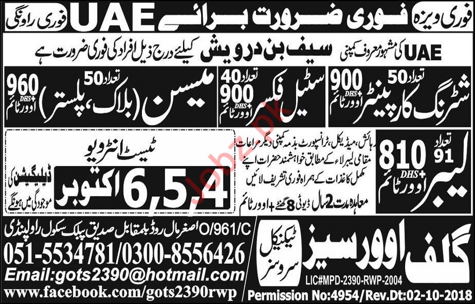 Vacancies in Glif Overseas Technical Services Advertisement October 2018