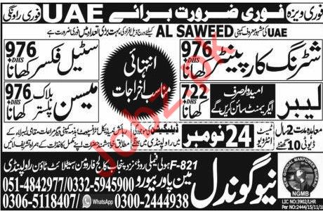 Latest New Gondal Manpower Bureau Construction Posts UAE 2025
