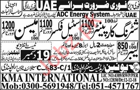 Shuttering Carpenter, Steel Fixer, Mason & Pipe Fitter Jobs