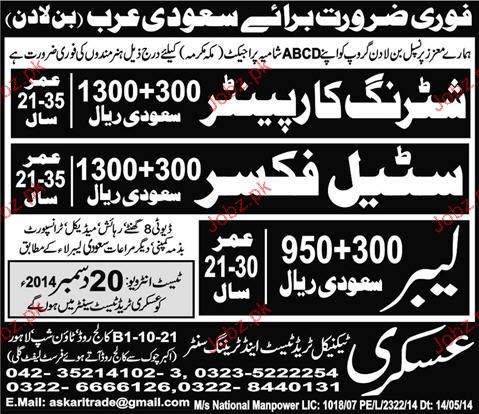 Shuttering Carpenters and Steel Fixers are required in Saudi Arabia.