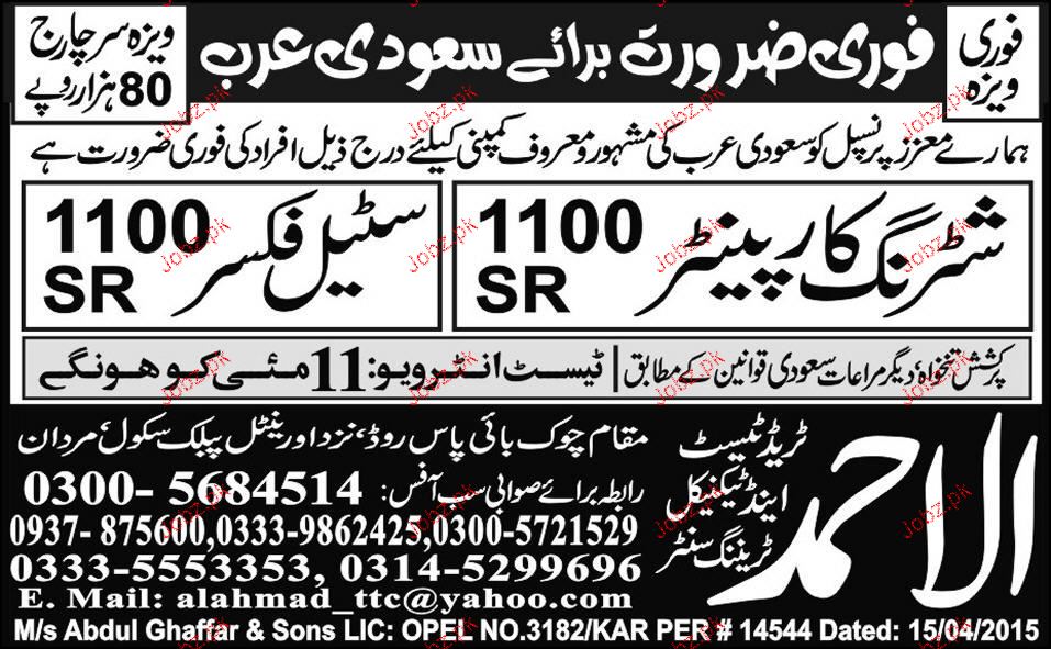 Shuttering Carpenters and Steel Fixers are required in Saudi Arabia.