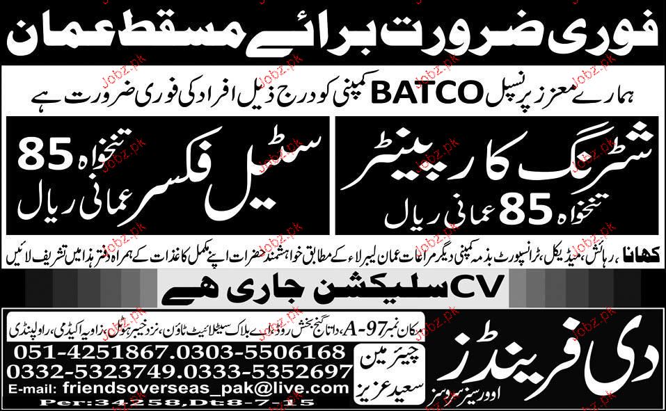 Apply as per details in job advertisement. Login to view further details of how to apply via https://www.jobz.pk online.