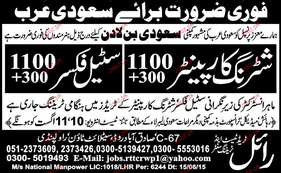 Shuttering Carpenters and Steel Fixers are required in Saudi Arabia.